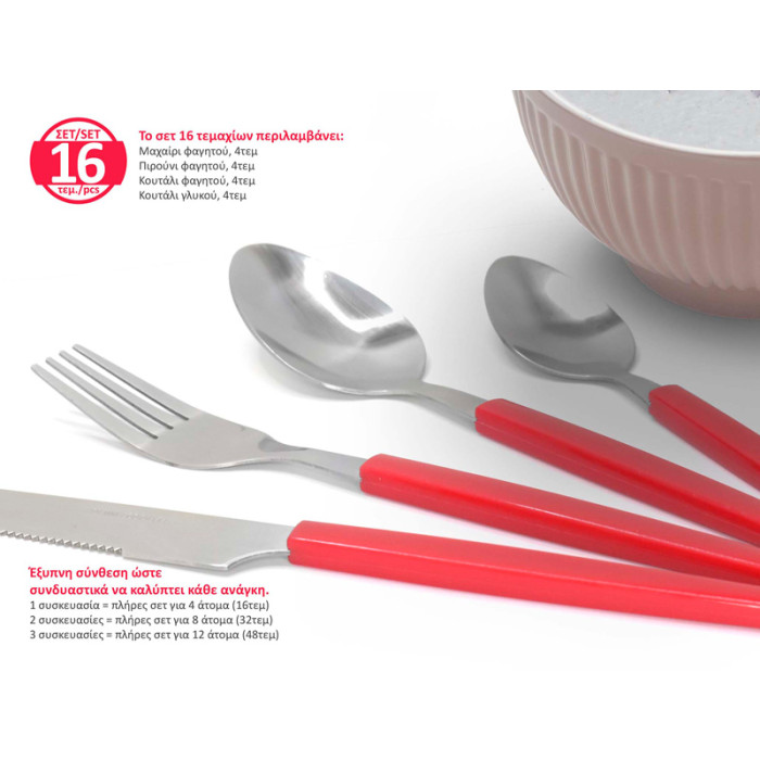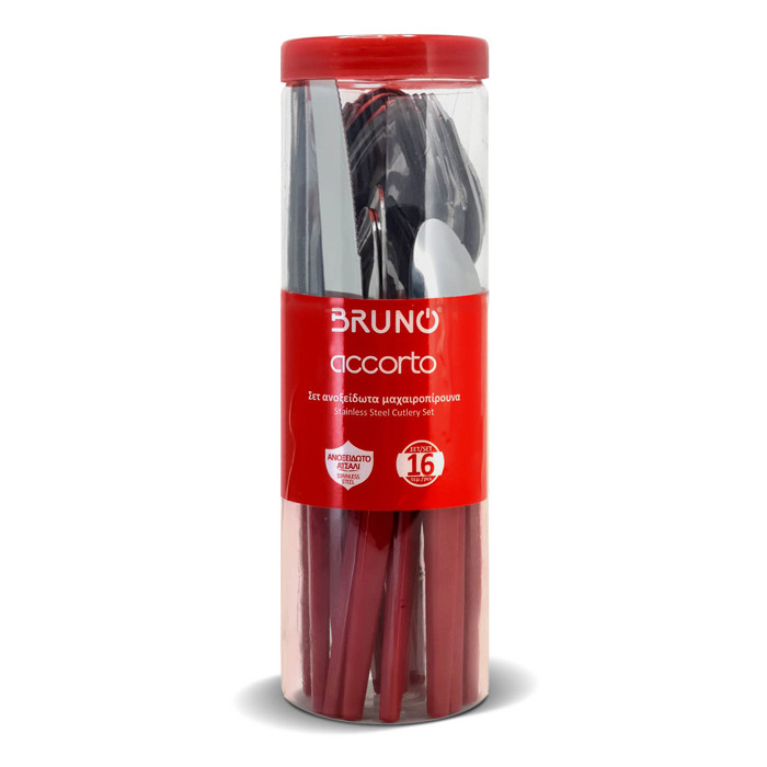 BRUNO σετ μαχαιροπίρουνα ανοξείδωτα Accorto, κόκκινο, 16τμχ