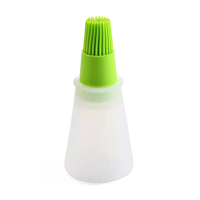 Εύκαμπτο μπουκάλι σιλικόνης με πινέλο επάλειψης λαδιού. Είναι εξαιρετικά χρήσιμο και πρακτικό για το λάδωμα του κρέατος αλλά μπορεί να χρησιμοποιηθεί επίσης και για το άπλωμα του γλάσου σε συνταγές ζαχαροπλαστικής.