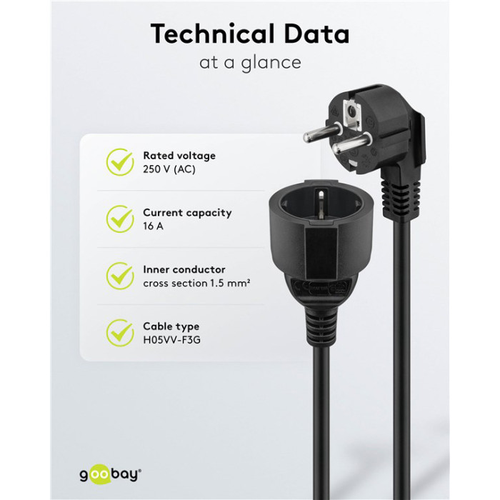 GOOBAY μπαλαντέζα προέκταση ρεύματος 93094, schuko, 3x 1.5mm², 5m, μαύρη
