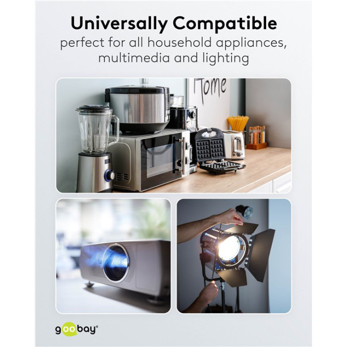 Η μπαλαντέζα της Goobay επιτρέπει την επέκταση της πρόσβασης στο ρεύμα, προσφέροντας ευελιξία και πρακτικότητα σε περιπτώσεις που η πρίζα τοίχου βρίσκεται μακριά από τις ηλεκτρικές συσκευές.