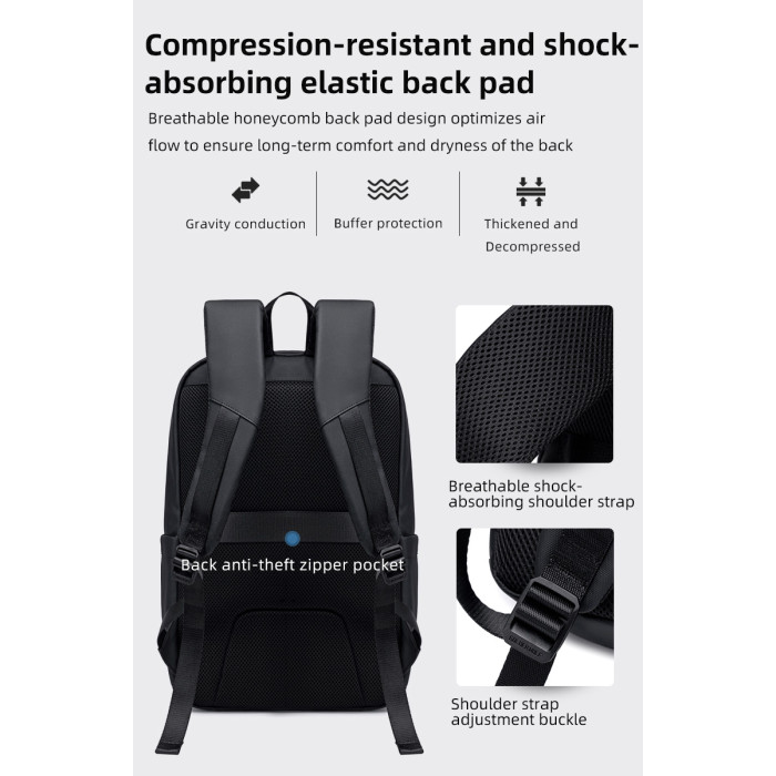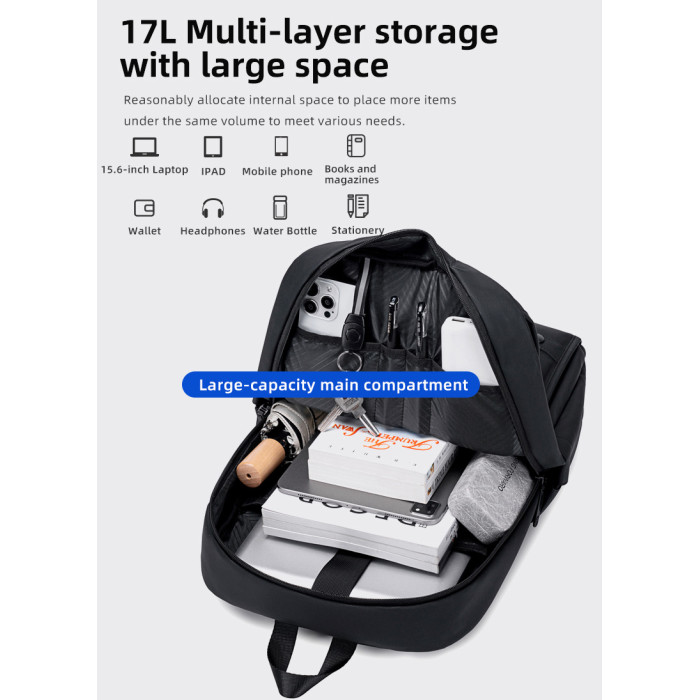 GOLDEN WOLF τσάντα πλάτης GB00705 με θήκη laptop 15.6", 17L, μαύρη