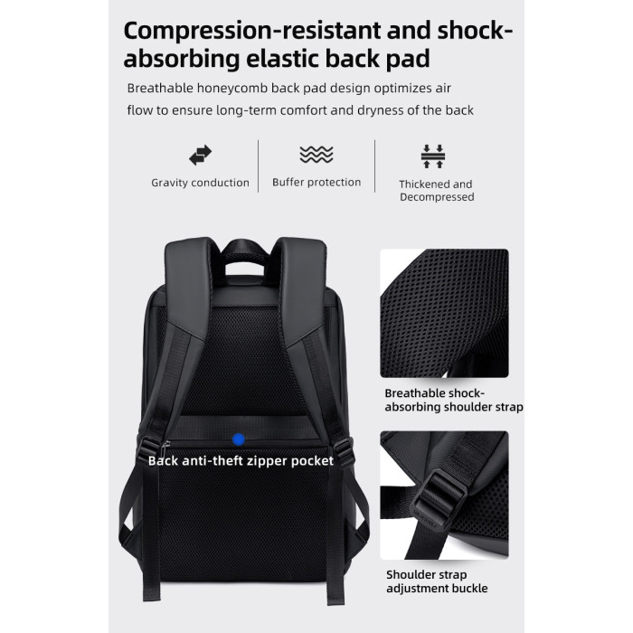 GOLDEN WOLF τσάντα πλάτης GB00707 με θήκη laptop 15.6", 21L, μαύρη