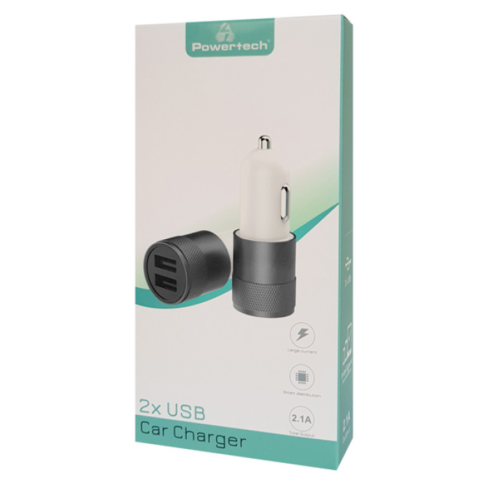 POWERTECH φορτιστής αυτοκινήτου PT-798, 2x USB, 2.1A, γκρι