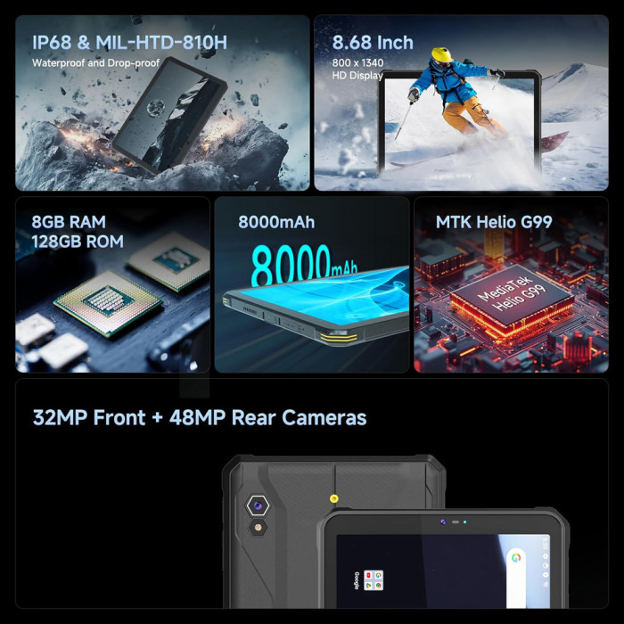 ONERUGGED tablet T1, 8.68", 8/128GB, 4G, 8000mAh, IP68/MIL-STD 810H/Atex Zone 2, μαύρο