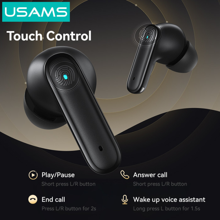 USAMS earphones με θήκη φόρτισης E05, True Wireless, BT 6.0, μαύρα