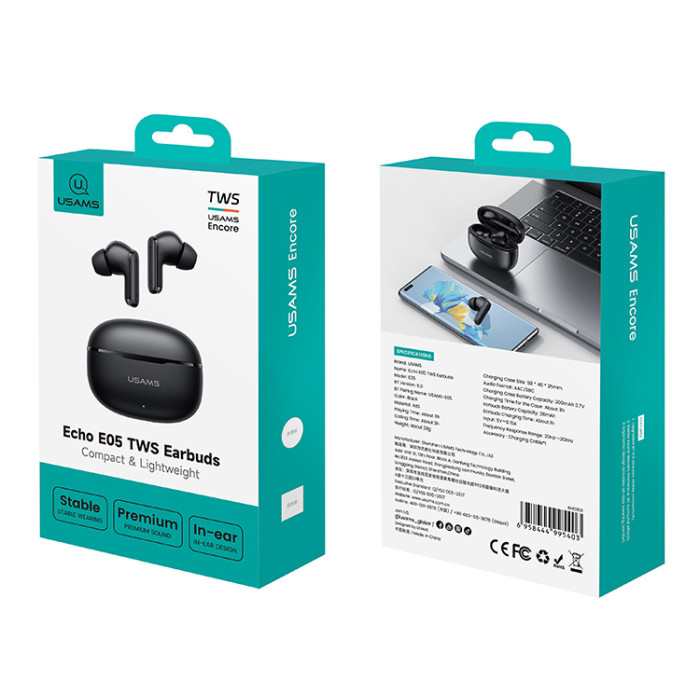Τα true wireless earphones E05 της Usams προσφέρουν κορυφαία ποιότητα ήχου και άριστη εφαρμογή στο αυτί. Είναι συμβατά με tablets, smartphones και άλλες συσκευές που διαθέτουν Bluetooth.