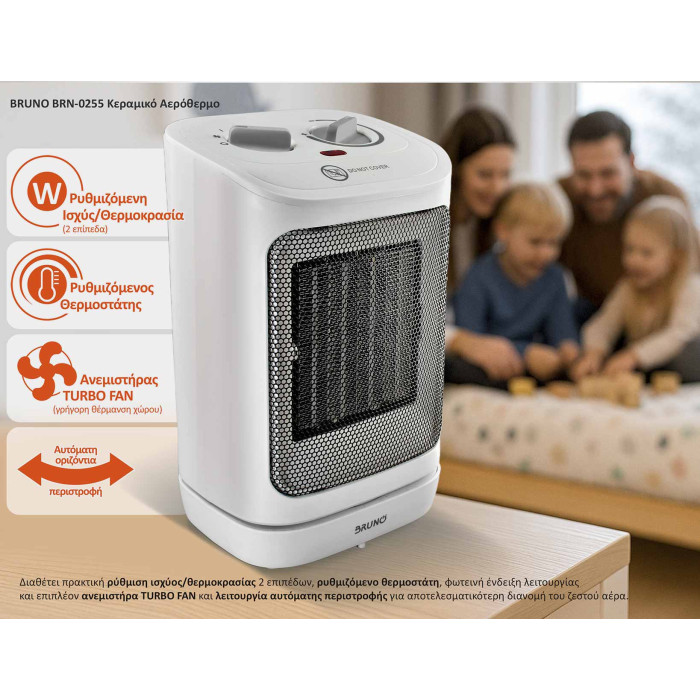 Το Κεραμικό Αερόθερμο BRUNO BRN-0255 είναι ιδανικό για γρήγορο και αποτελεσματικό ζέσταμα μικρών εσωτερικών χώρων και δωματίων και κρίνετε απαραίτητο για ένα νοικοκυριό ως βοηθητική-εναλλακτική λύση σε χώρους με ελλιπή θέρμανση.
