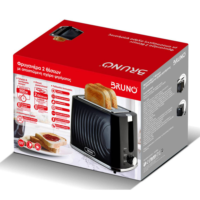 BRUNO φρυγανιέρα BRN-0274, 2 θέσεων, 900W, με σχάρα ψησίματος, μαύρη