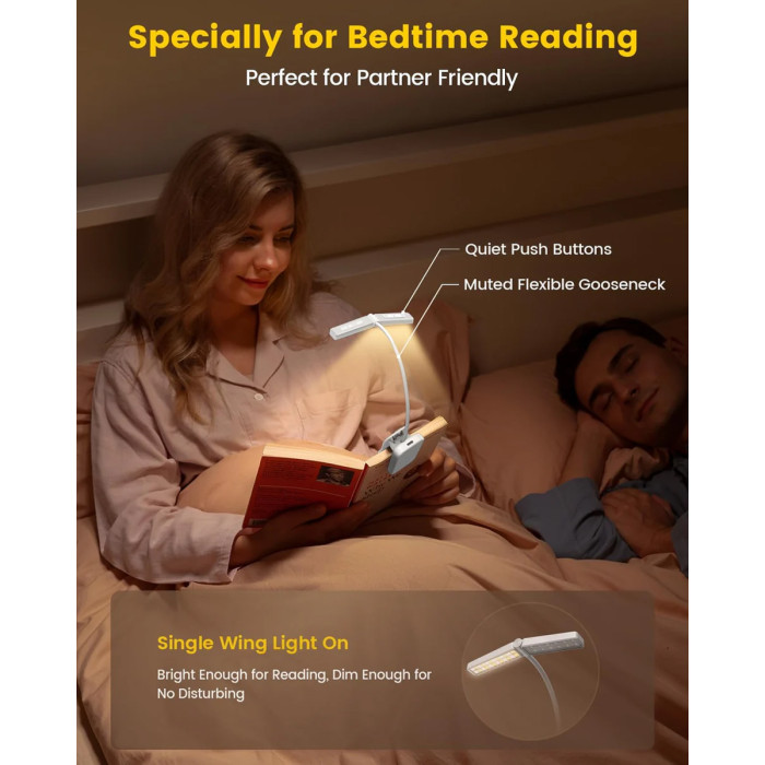 Ο εύκαμπτος βραχίονας σας επιτρέπει να ρυθμίζετε τη γωνία φωτισμού όπως επιθυμείτε, ενώ το πρακτικό κλιπ στερέωσης εξασφαλίζει σταθερό κράτημα στο βιβλίο.