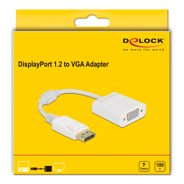 DELOCK αντάπτορας DisplayPort σε VGA 61007, Full HD, passive, λευκός