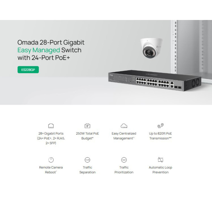 TP-LINK easy managed switch ES228GP, 28x Gigabit θύρες, PoE+, V1.0