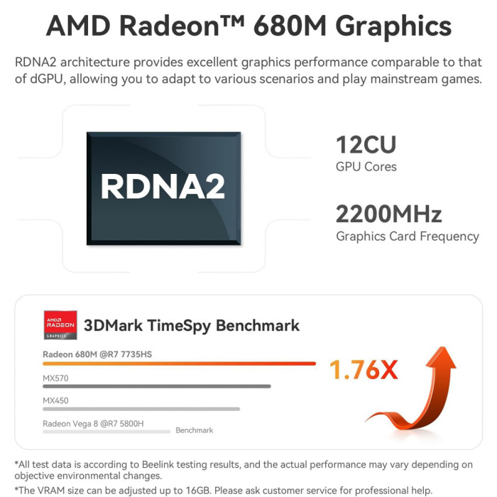 -Κάρτα γραφικών: AMD Radeon 680M, 12 cores 2200MHz