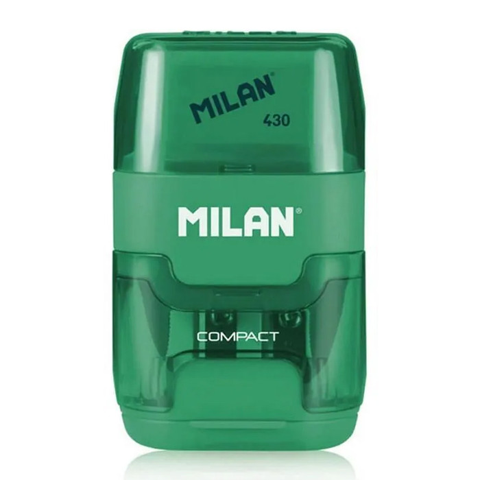 Διπλή ξύστρα μολυβιών της MILAN με γόμα και κάδο απορριμμάτων για καθαρό και εύκολο ξύσιμο των μολυβιών χωρίς υπολείμματα.
