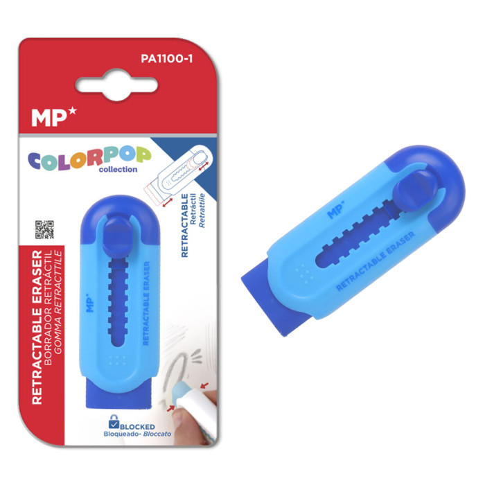 Γόμα της MP για εύκολο σβήσιμο μολυβιού, που δεν αφήνει υπολείμματα. Διαθέτει πρακτικό πτυσσόμενο μηχανισμό για την προώθηση και επαναφορά της γόμας.
