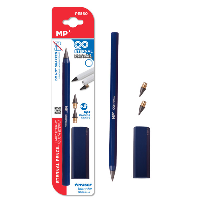 Καινοτόμο eternal μολύβι της MP που προσφέρει αδιάκοπη γραφή χωρίς ανάγκη για ξύσιμο με ξύστρα. Διαθέτει ειδική μύτη μεγάλης διάρκειας που αφήνει καθαρό και ομοιόμορφο αποτέλεσμα, ενώ στην συσκευασία συμπεριλαμβάνονται γόμα και 2x ανταλλακτικές μύτες.