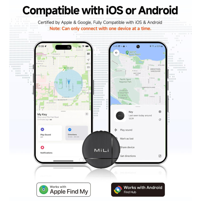 Είναι συμβατό με iOS και Android συσκευές και λειτουργεί με την εφαρμογή Apple Find My και Google Find My Device.