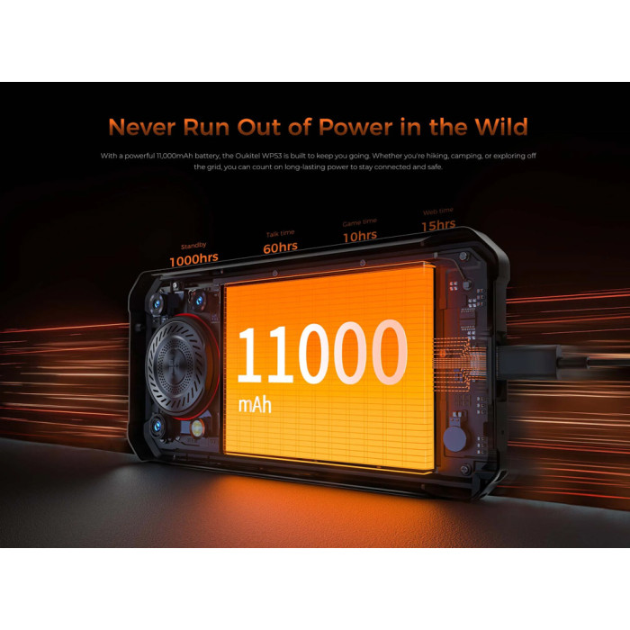 Με μπαταρία 11000mAh, το WP53 προσφέρει εξαιρετικά μεγάλη αυτονομία, που θα σας απαλλάξει από τις συχνές αναζητήσεις τροφοδοσίας.