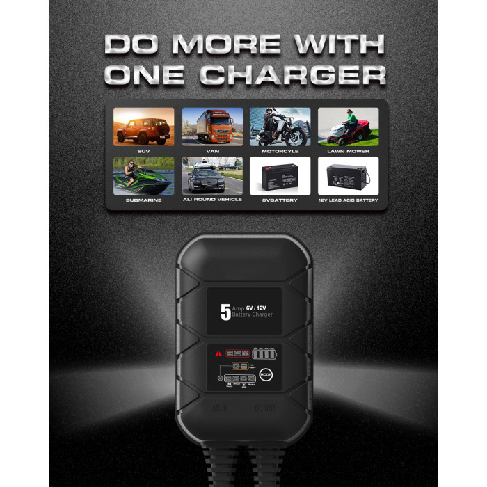 Ο BYGD S5000 είναι ένας αξιόπιστος και έξυπνος φορτιστής–συντηρητής μπαταρίας, ιδανικός για αυτοκίνητα, μοτοσυκλέτες και άλλα οχήματα με μπαταρίες 6V ή 12V.