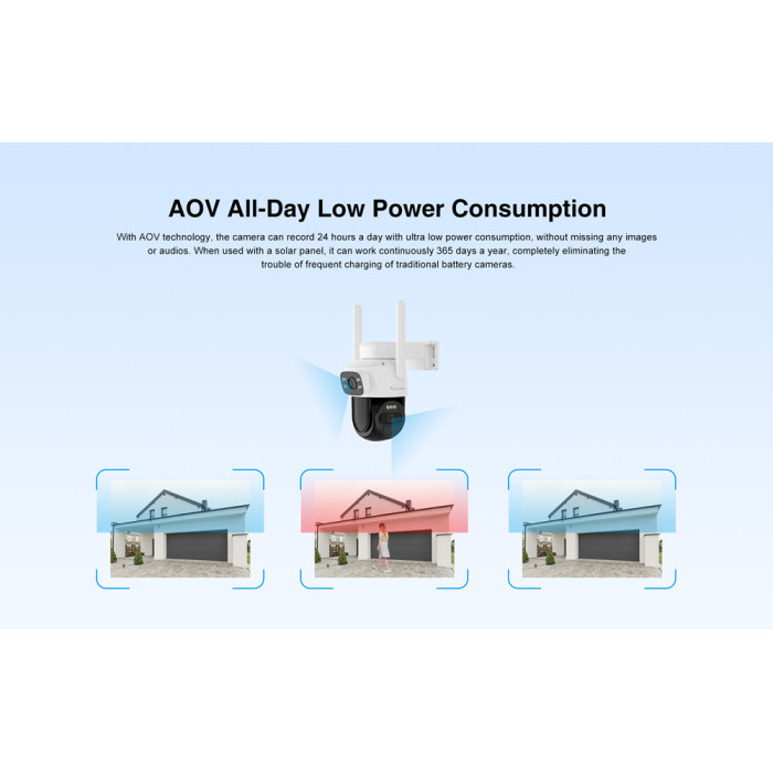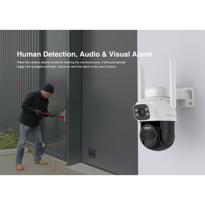 Μπορεί να ανιχνεύσει την ανθρώπινη σιλουέτα και κίνηση, στέλνοντας ειδοποιήσεις στο smartphone σας κάθε φορά που ανιχνεύεται κίνηση αλλά και να ενεργοποιήσει ηχητικό και οπτικό (με φως) συναγερμό.