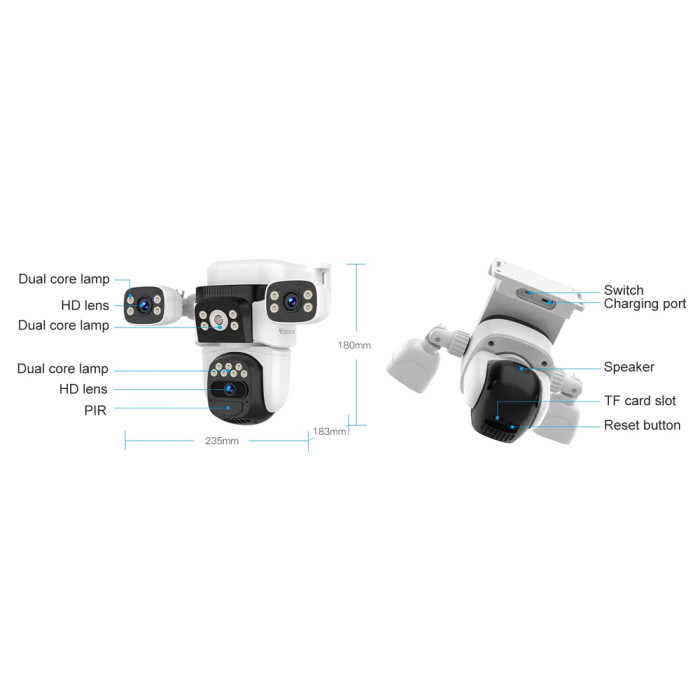 VSTARCAM smart ηλιακή κάμερα CB621SR, triple lens, 2MP, WiFi, SD, PTZ, IP66