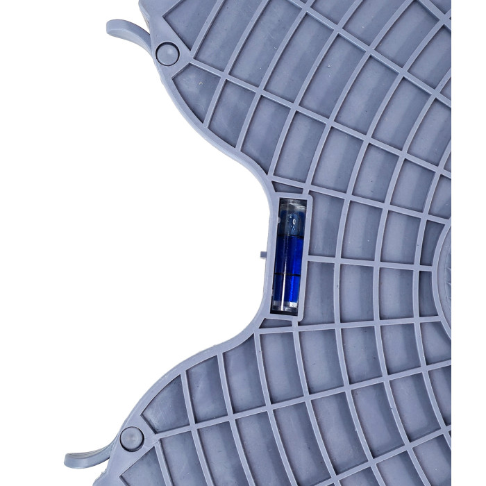 Διαθέτει 4 διπλούς τροχούς με φρένα ακινητοποίησης, 8 ποδαράκια ρυθμιζόμενου ύψους και αλφάδι για την διευκόλυνση της τοποθέτησης των αντικειμένων.