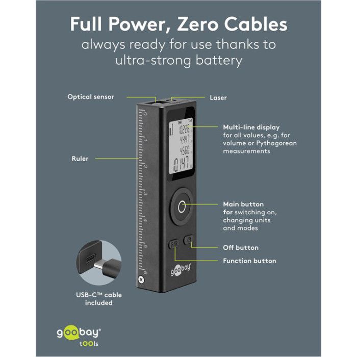 GOOBAY laser μετρητής απόστασης 77834, επαναφορτιζόμενος, έως 30m