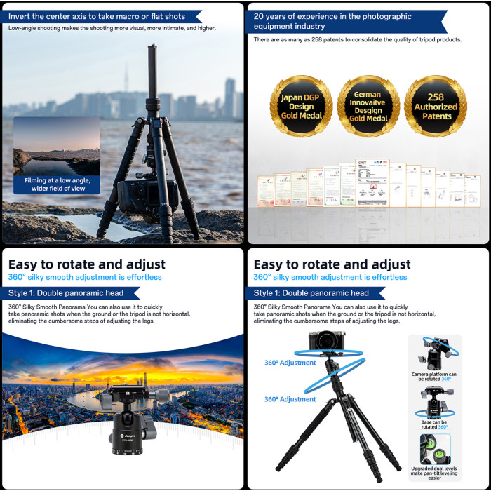 Το τρίποδο για φωτογραφική μηχανή της FOTOPRO, σας επιτρέπει να τραβήξετε με ασφάλεια, σταθερές λήψεις, σε οποιαδήποτε θέση.